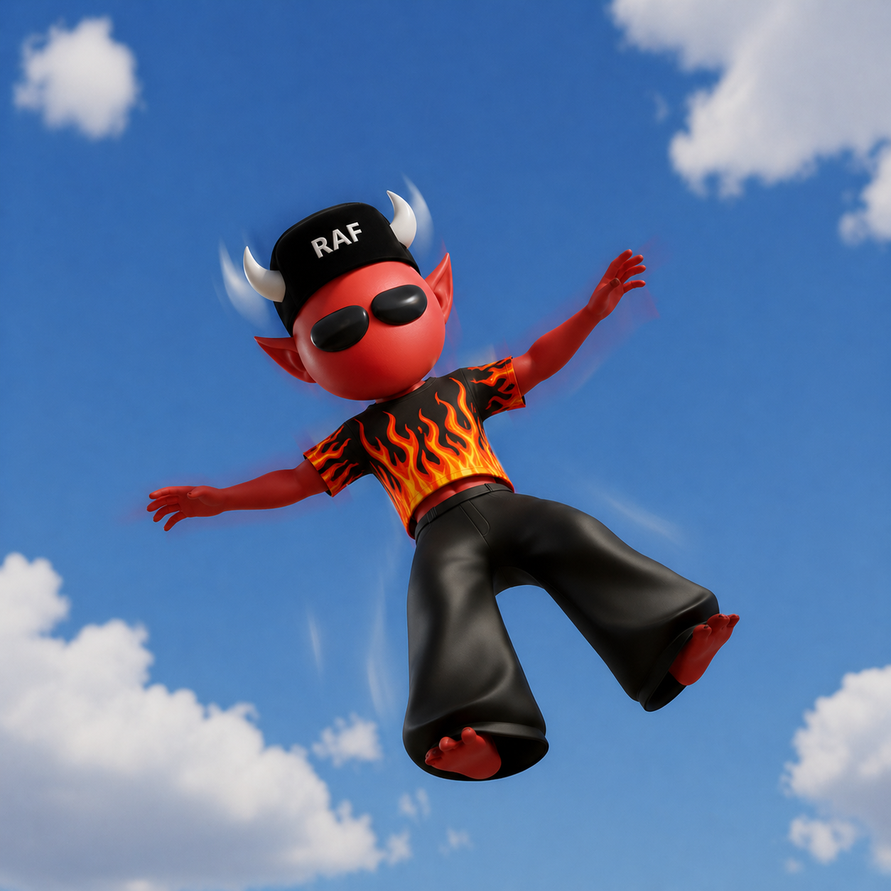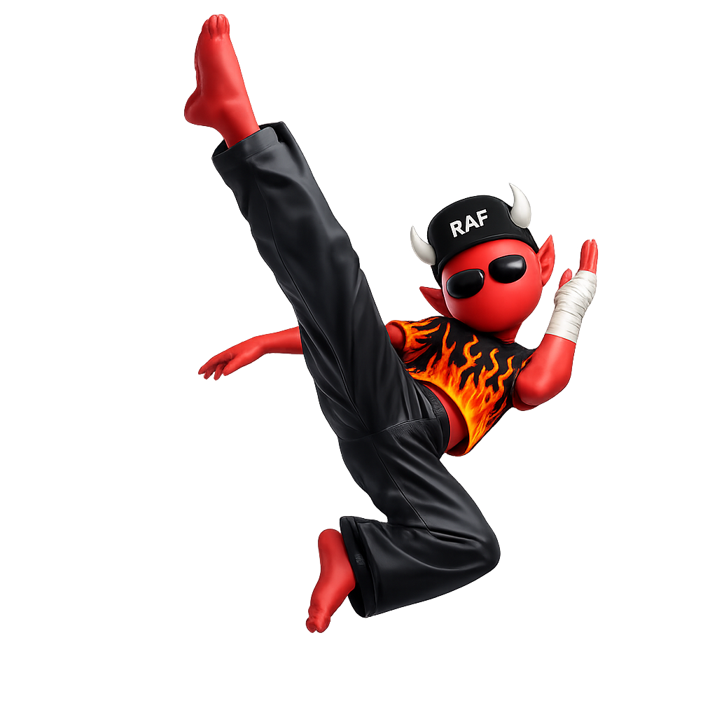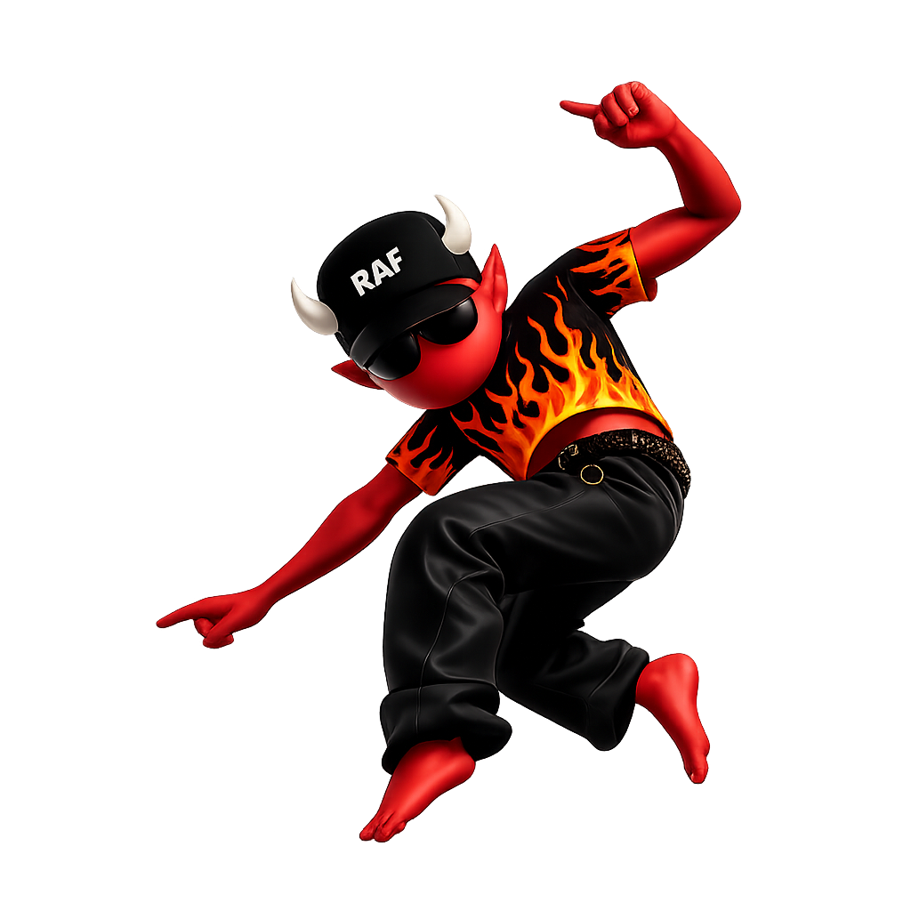 Deep underground lived a little devil named RAF. He got bored of boiling sinners and twisting pitchforks — he wanted pure hype.